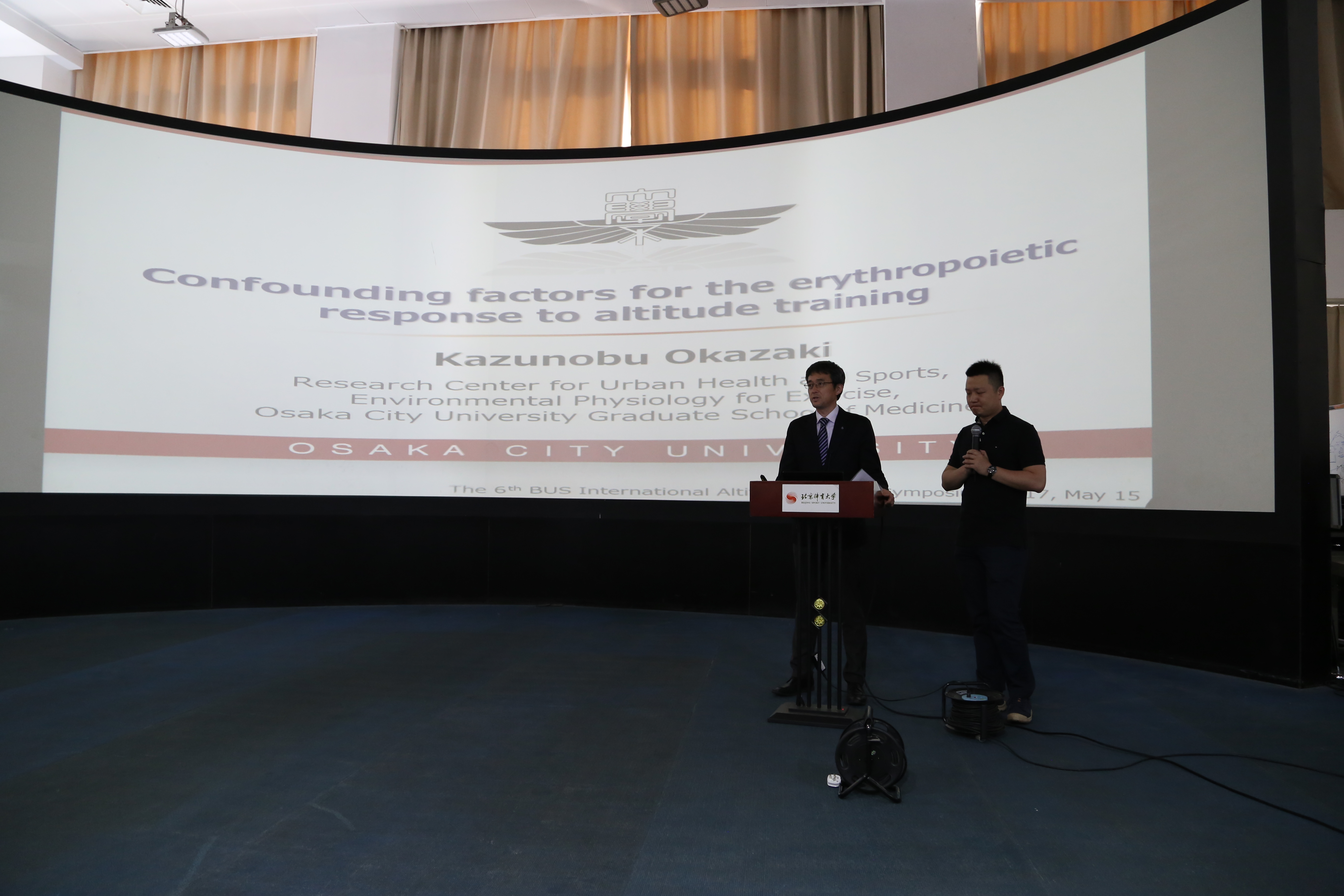 在简短的开幕式后,日本大阪城市大学Kazunobu Okazaki副教授为大家做了题为Confounding factors for the erythropoietic response to altitude training(高原训练中影响造血反应的因素)的讲座。