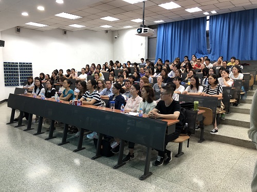 2018年9月6日18:30,国际体育组织学院在教学楼214教室和215教室召开了2018级师生见面会。出席本次师生见面会的有国际体育组织学院院长田慧、党总支副书记戴旭、副院长郑辉。辅导员刁艾莉、各语种新生教师代表、2018级全体本科生及研究生参加了本次见面会。见面会分别由胡旭、欧欣荣两位老师全程英文主持。