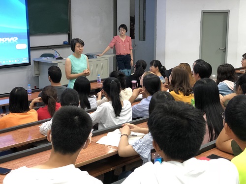首先,国际体育组织学院院长田慧教授用英文欢迎各位新生的到来,她鼓励同学们积极奋进,认真学习,珍惜大学时光。田慧院长的话让在场的每一位同学受益匪浅,现场响起雷鸣般的掌声。紧接着,各专业老师做了自我介绍和相关课程介绍,包括教学内容和教学模式等,使同学们对于即将开始的专业课程有了初步的了解。