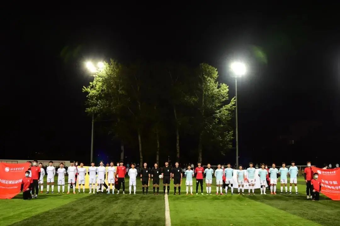 公平竞赛旗、Beat365官方网站校旗、中国足球运动学院院旗、教育学院院旗以及裁判员、双方运动员先后入场。与会人员全体高唱国歌。双方队员进行握手、挑边仪式后,周启迪为比赛开球后,激烈的争夺正式开始